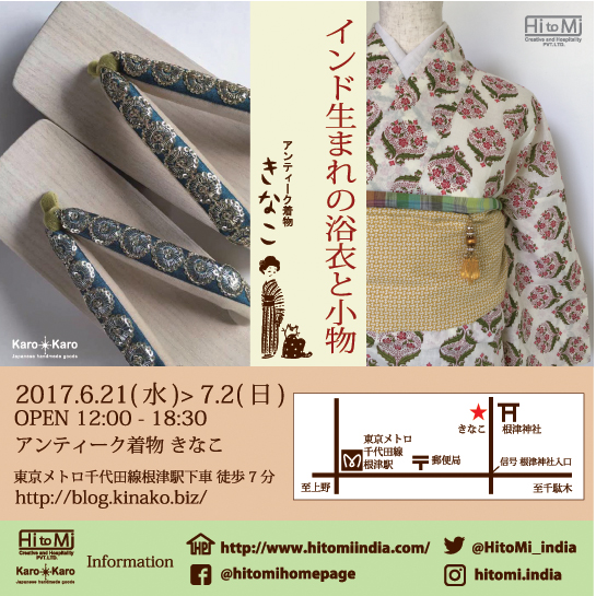 明後日6月21日(水)からはじまるアンティーク着物「きなこ」さんでの浴衣展示会。